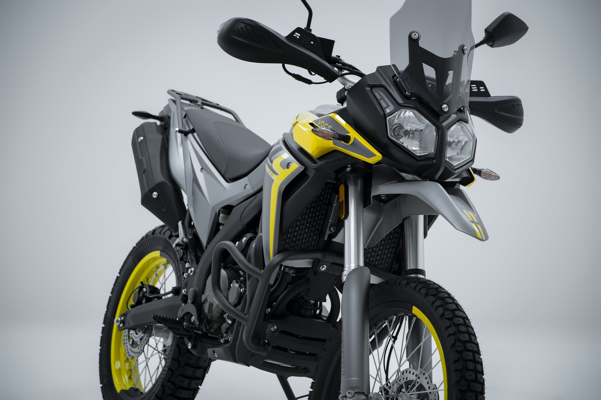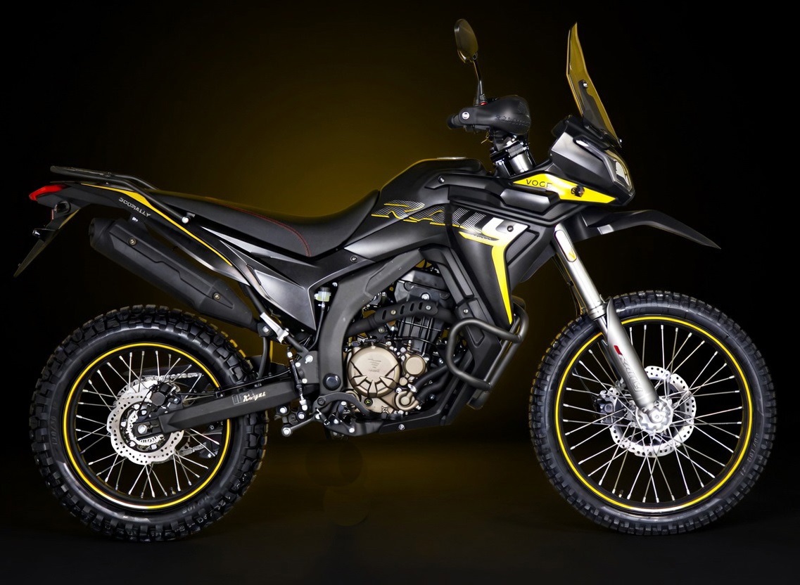 Entdecke mit der Voge Rally 300 die Freiheit abseits der Straße – leicht, robust und unschlagbar günstig. Inspiriert von echten Rallye-Legenden, meistert sie Trails, Schotter und Asphalt mit Leichtigkeit. Der 292-cm³-Einzylinder (flüssigkeitsgekühlt, DOHC, Einspritzung) liefert ca. 30 PS und 25 Nm – genug für entspanntes Reisen bis 110 km/h und Spaß im Gelände. Bei nur 2,8 l/100 km und 12,5 Liter Tankvolumen kommst du weit. Mit knapp 158 kg Gewicht, 280 mm Bodenfreiheit, langer Federung (240 mm vorne Upside-Down) und 21/18-Zoll-Speichenrädern fliegst du über Waldwege und Green Lanes. Abschaltbares ABS, Crashbars und Gepäckträger sind serienmäßig dabei. Die Dakar-Optik mit LED-Lichtern und solider Verarbeitung zieht Blicke an – und das alles zu einem Preis deutlich unter 4.299 €. Für Einsteiger, Trail-Fans oder als günstiges Zweitbike: Die Rally 300 macht jedes Abenteuer zugänglich und lässt dich grinsend heimfahren. Steig auf – und unlock dein echtes Abenteuer! Voge Rally 300. Ready for Anything.