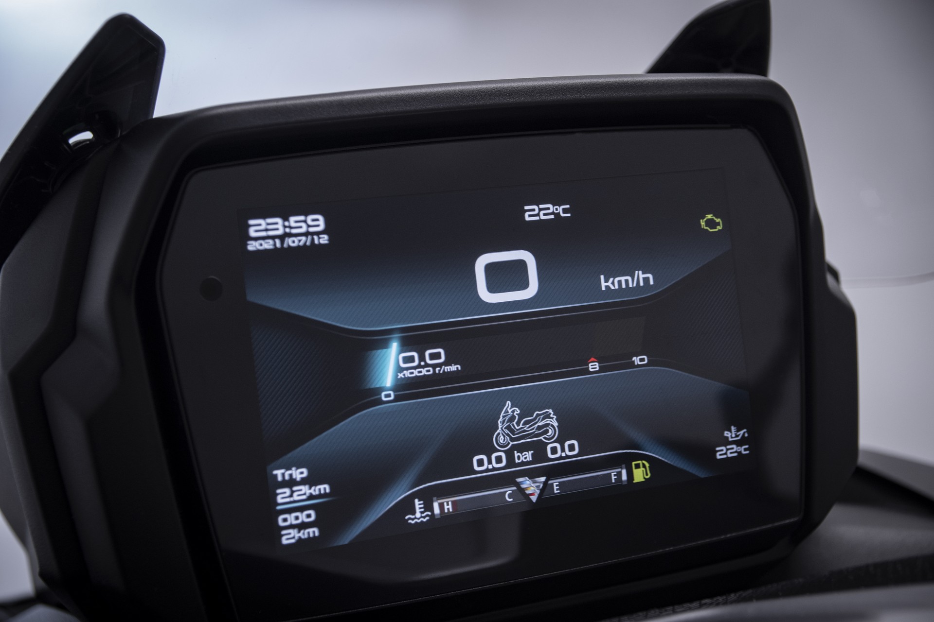 Der Voge SR4 Max 350 Luxury fährt sich souverän und komfortabel. Der 349-cm³-Motor mit 34 PS bringt den Roller locker auf 130 km/h, während die KYB-Federung Unebenheiten gut schluckt und die entspannte Sitzposition auch längere Touren angenehm macht. In der Stadt ist er wendig, auf der Landstraße stabil und spurtreu. Besonders überzeugend sind die Sicherheitsfeatures: Bosch-ABS mit Traktionskontrolle sorgt für sicheres Bremsen und Beschleunigen. Die Luxury-Version bietet zusätzlich Reifendruckkontrolle und Rückfahr-Radar. Die elektronischen Extras machen jede Fahrt besser: 7-Zoll-TFT-Display mit Bluetooth, Keyless-Go, elektrisch verstellbare Windschutzscheibe, Sitz- und Griffheizung sowie Voll-LED-Licht. Zwei Helme passen unter die Sitzbank. Fazit: Ein hochwertig ausgestatteter Maxi-Scooter, der sich premium anfühlt, viel Sicherheit und Komfort bietet – zu einem sehr fairen Preis.