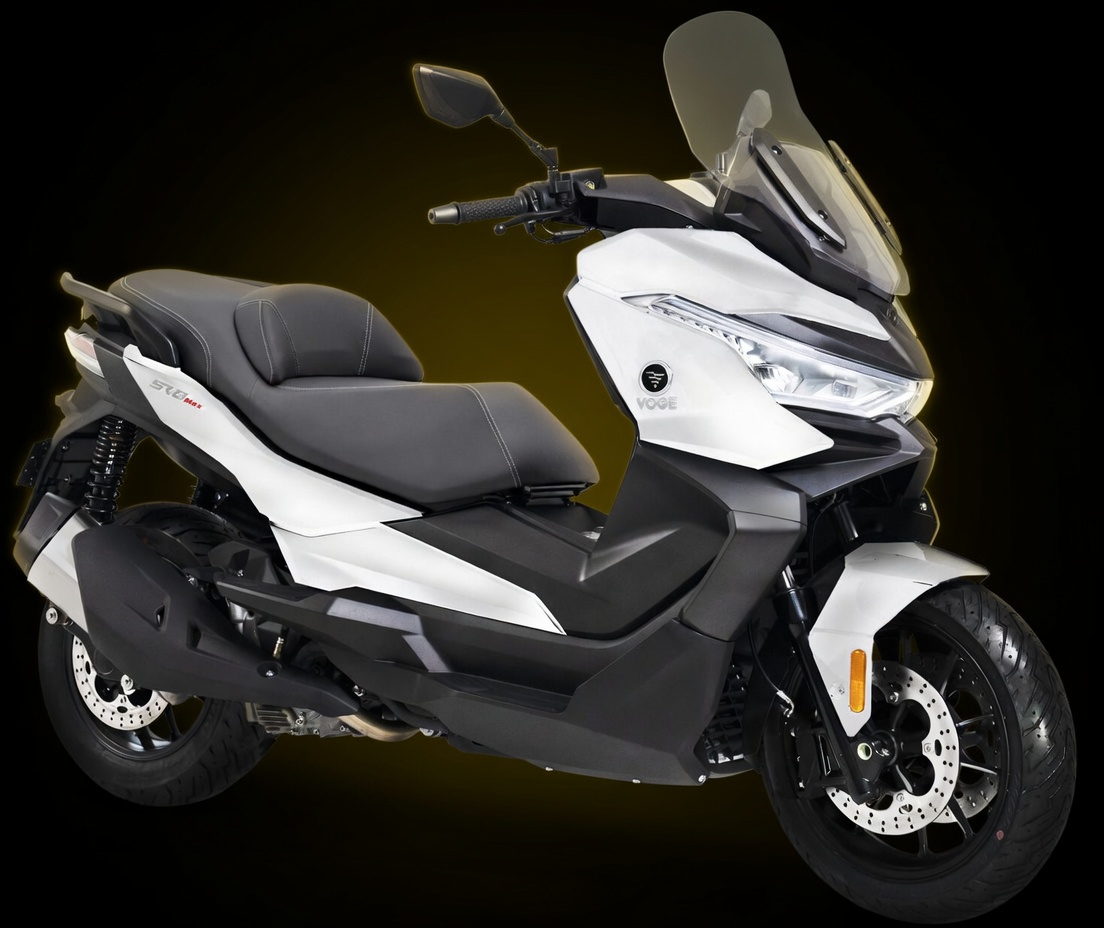 Der Voge SR4 Max 350 ist ein moderner Maxi-Scooter, der Premium-Komfort und hochwertige Technik zu einem attraktiven Preis bietet. Mit seinem flüssigkeitsgekühlten 349-cm³-Einzylindermotor liefert er 34 PS und erreicht eine Höchstgeschwindigkeit von rund 130 km/h. Der Verbrauch liegt bei angenehmen 3,5 bis 4 Litern pro 100 km. Der Roller überzeugt durch eine umfangreiche Ausstattung: 7-Zoll-TFT-Display mit Bluetooth, Keyless-Go, elektrisch verstellbare Windschutzscheibe, Sitz- und Griffheizung, Voll-LED-Beleuchtung, Bosch-ABS mit Traktionskontrolle sowie Reifendruckkontrolle. Es sind zusätzlich Rückfahr-Radar und Frontkamera an Bord. Zwei Helme finden unter der geräumigen Sitzbank Platz. Dank komfortabler Federung und entspannter Sitzposition fährt sich der SR4 Max sowohl in der Stadt als auch auf längeren Touren angenehm und souverän.